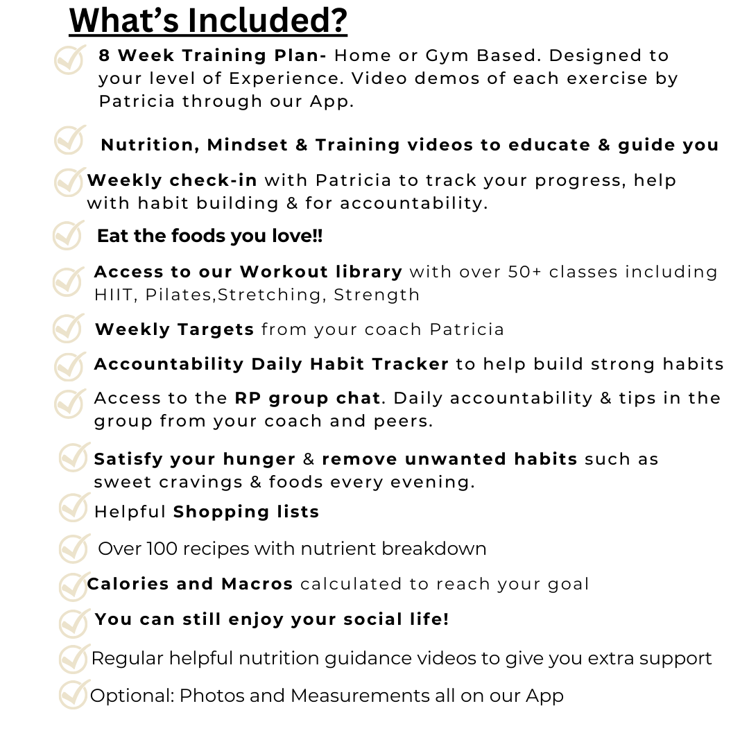 After the challenge, you can naturally progress into one of our online training programmes. You will receive a training plan (gym/ home) for your level that will be progressed each month & allows you continued access to the app.